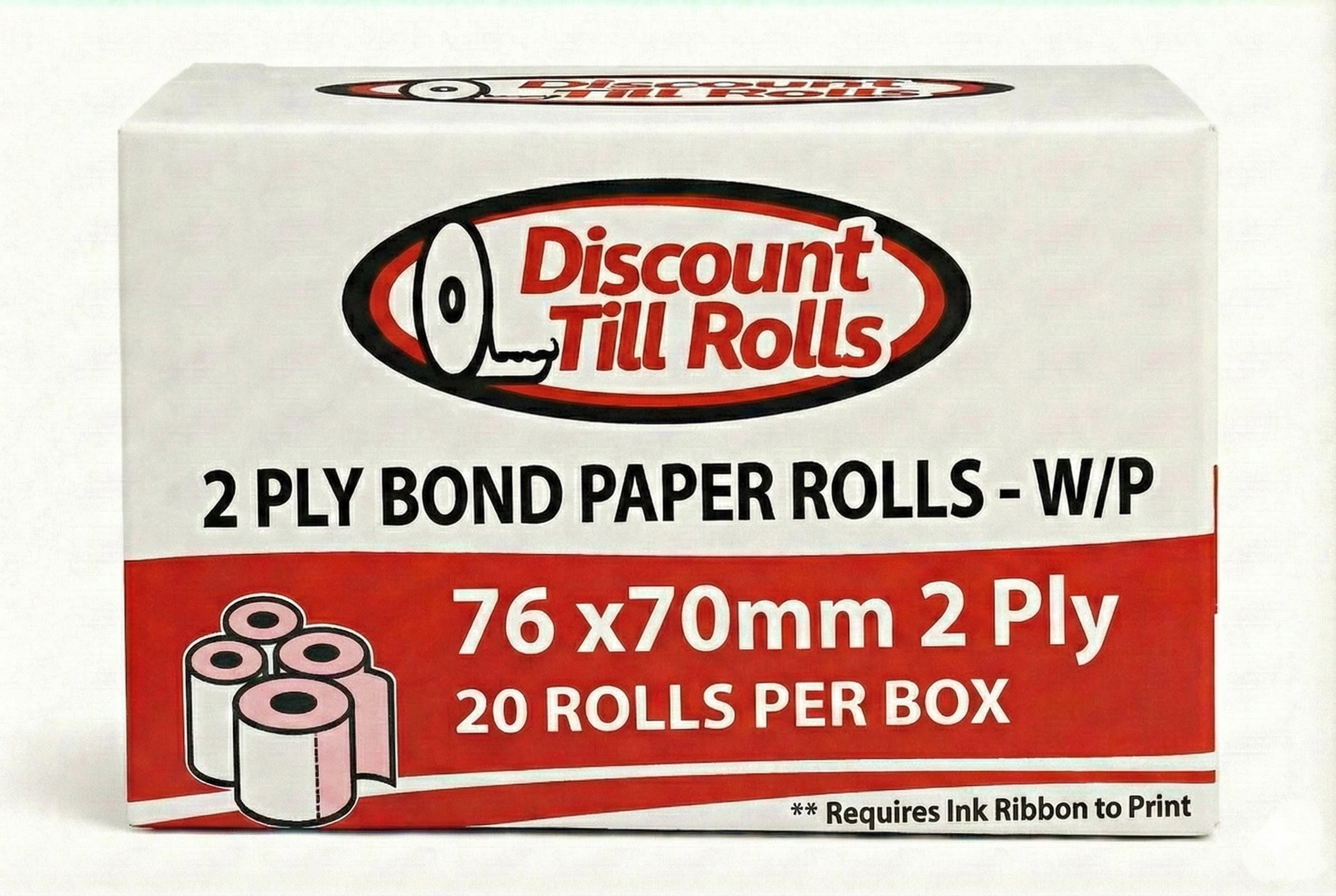 2-Ply Kitchen Docket Rolls – 76x70mm White & Pink (20 Roll Box)
