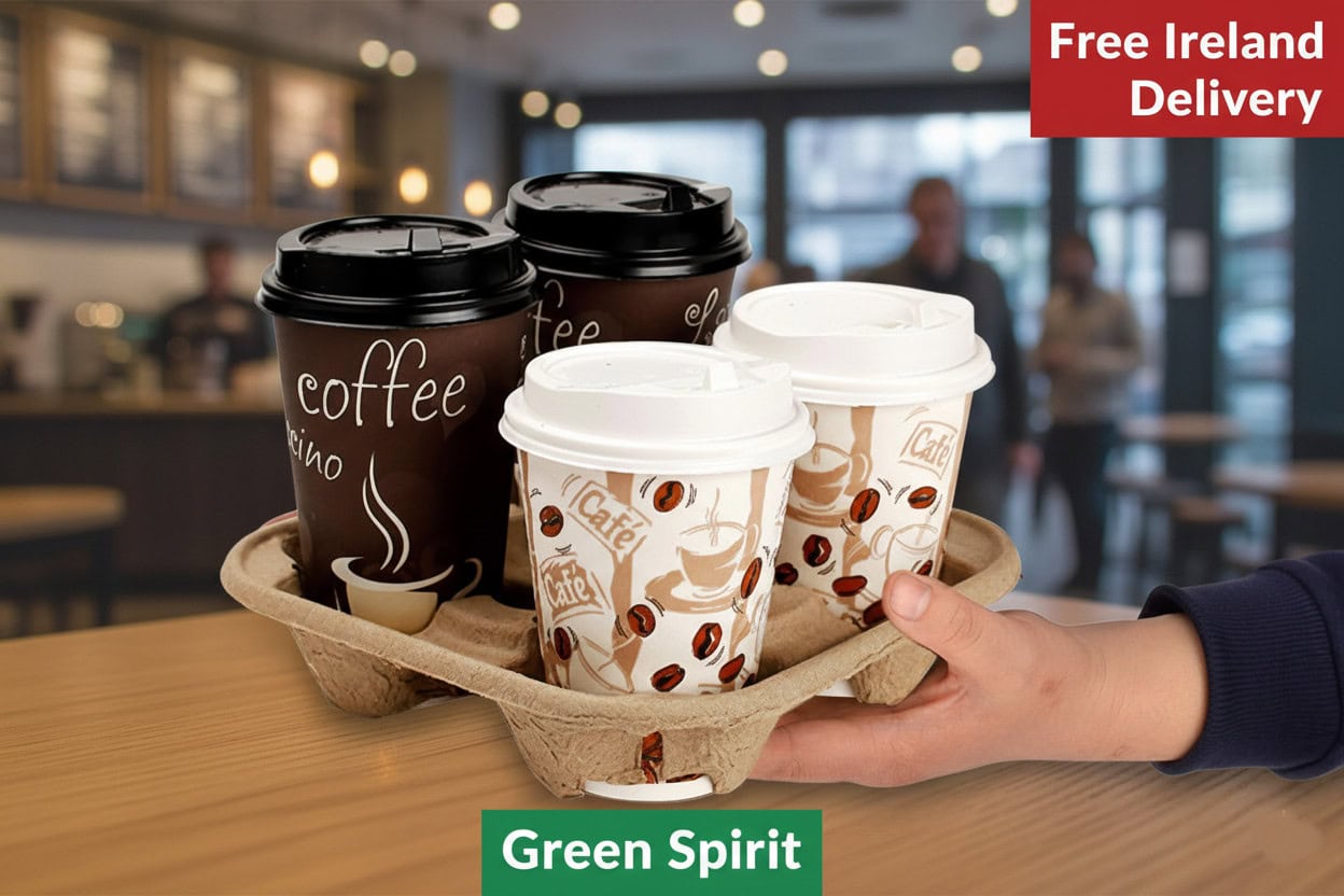 Ideal for eco-conscious businesses that want to reduce waste without compromising on quality. From takeaway coffee runs to large restaurant orders, these 4 cup carrier trays are the reliable, green solution trusted by cafés and hospitality businesses across Ireland.