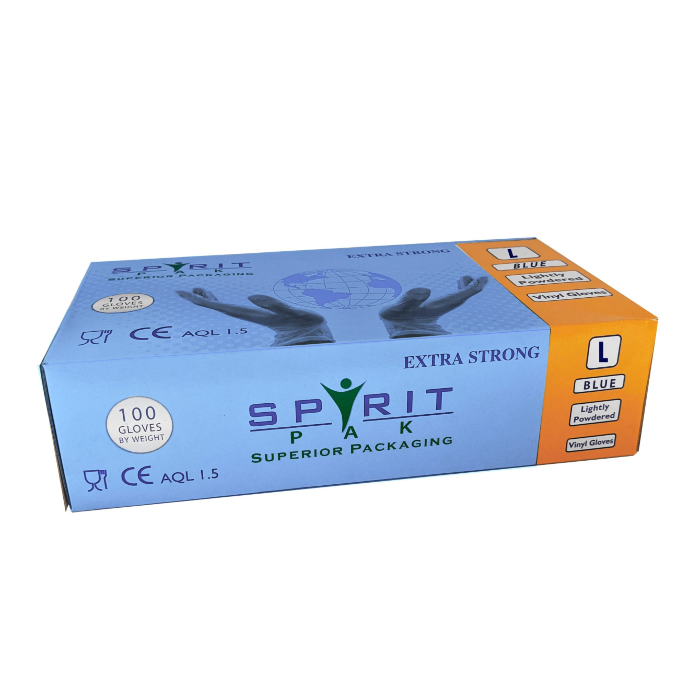 Spirit Lightly Powdered Blue Large Vinyl Gloves: Affordable, Convenient and Safe for Foodservice Applications