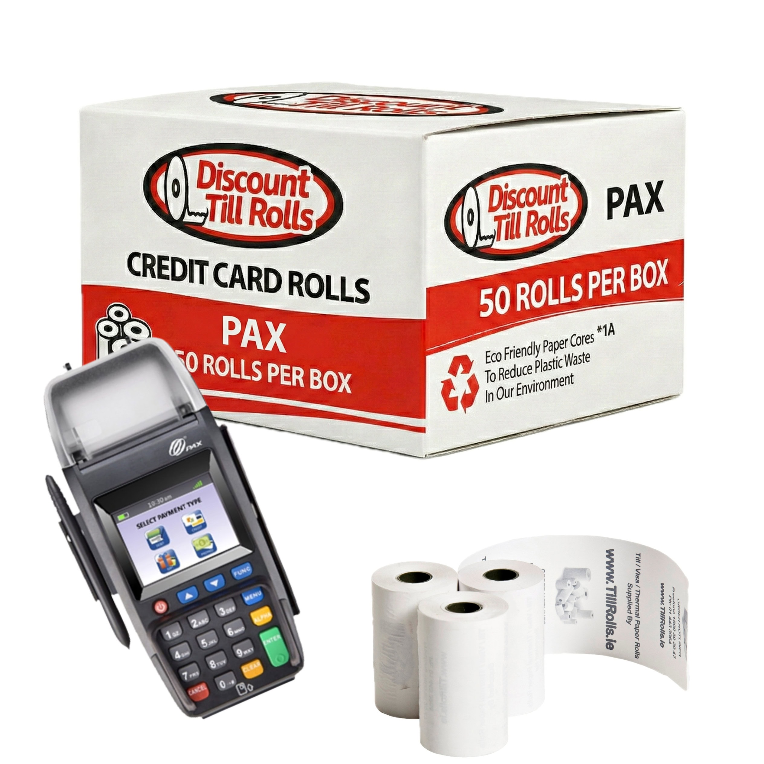 If you are not sure which PAX Credit Card Rolls you need, or Ph: +353 (0)1 4433964 - UK Local Ph: +44 (0)20 8144 4475 and we will be more than happy to help you find what you require.