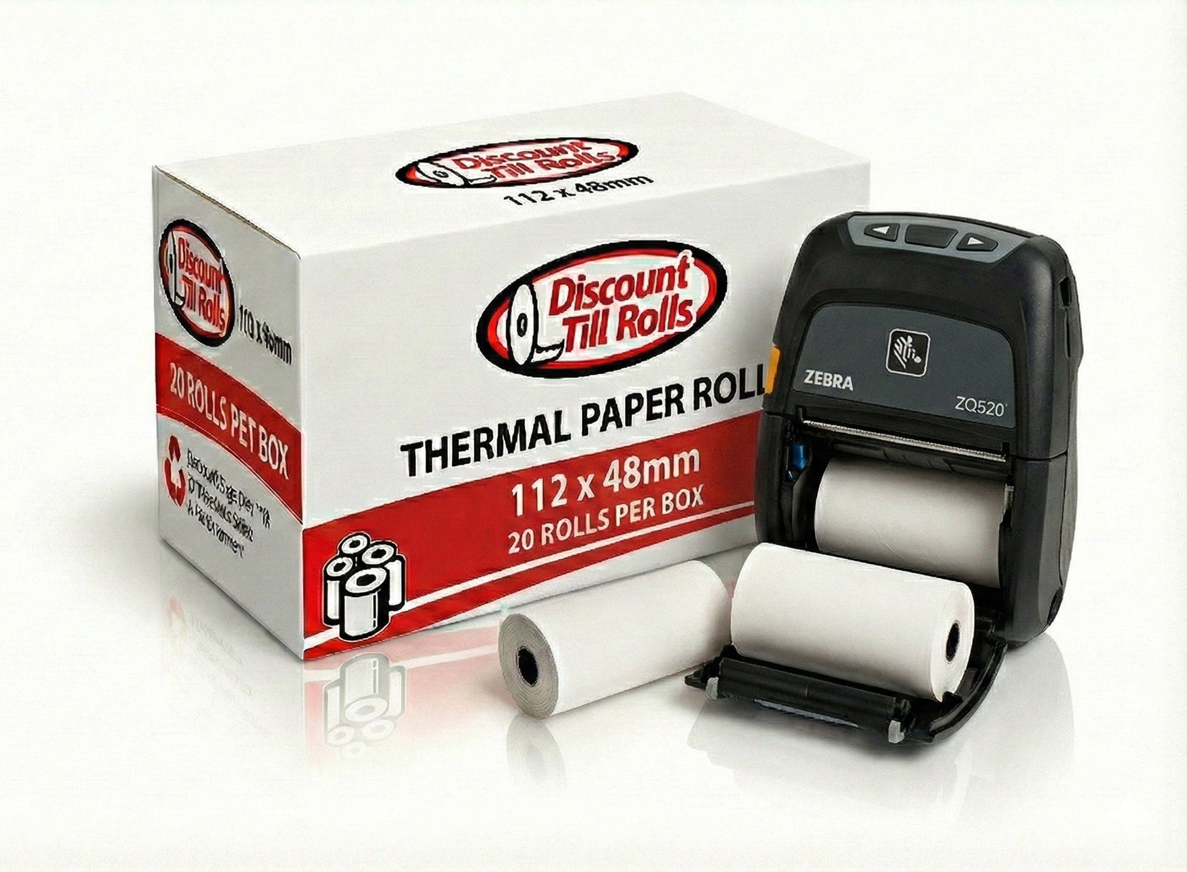 Invest in your mobile printers and avoid costly downtime. Order 112 x 48mm BPA free thermal paper rolls today from Discount Till Rolls for professional, reliable printing with free next day delivery in Ireland.