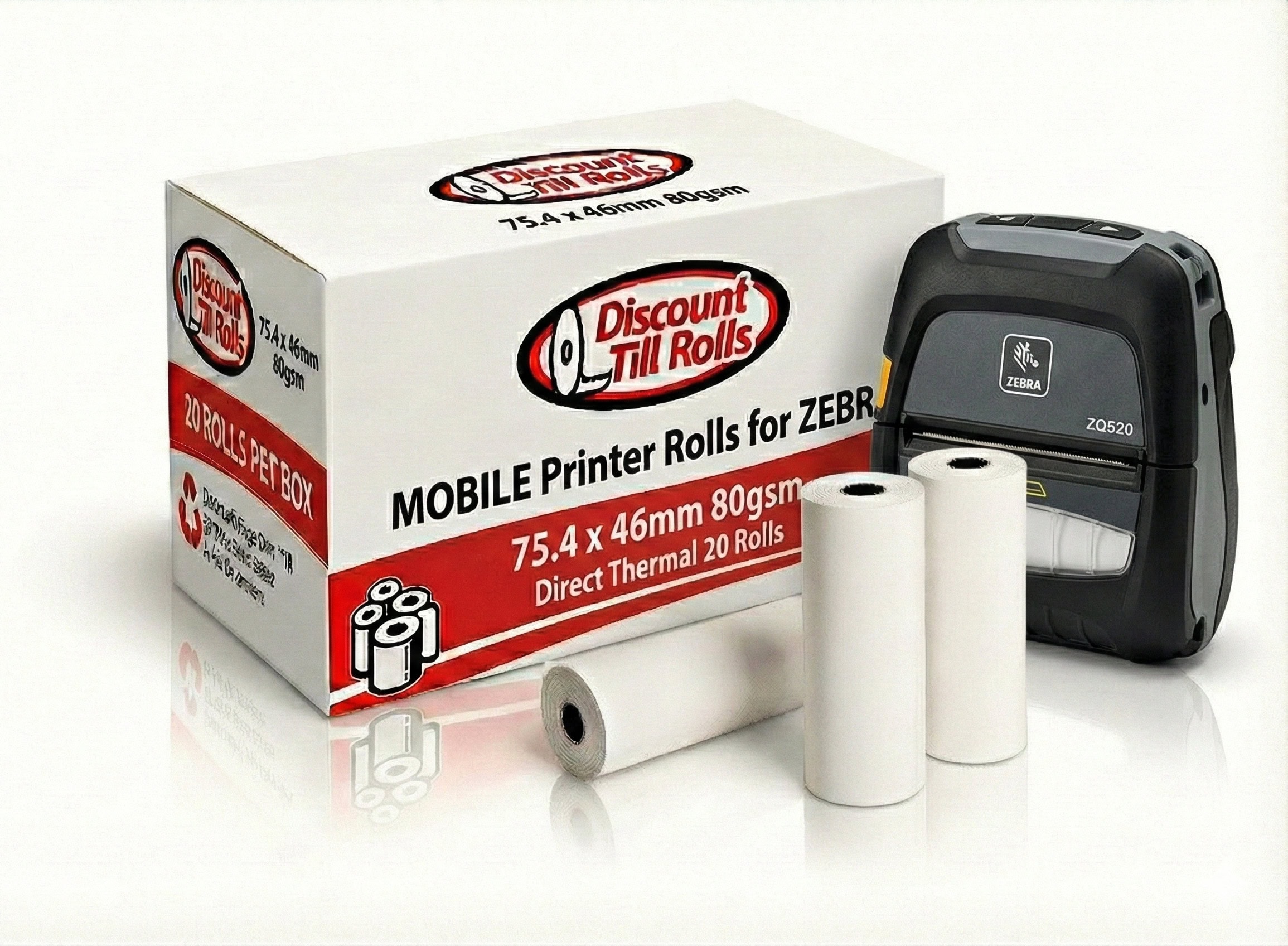 Zebra ZQ610 Direct Thermal Rolls. Box of 20 rolls.